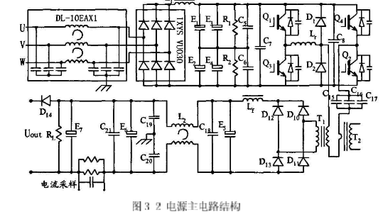 在研討的過程中,主要對大功率開關(guān)直流電源的作業(yè)原理、電路的拓?fù)浣Y(jié)構(gòu)和運行形式進行了深入研討,并結(jié)合系統(tǒng)的技術(shù)參數(shù),確認(rèn)系統(tǒng)主電路的拓?fù)洌?guī)劃出主電路,即別離規(guī)劃出濾波、整流、DCDC變換器、軟啟動和維護操控等部分。下面就對電源主電路的規(guī)劃進行具體說明。