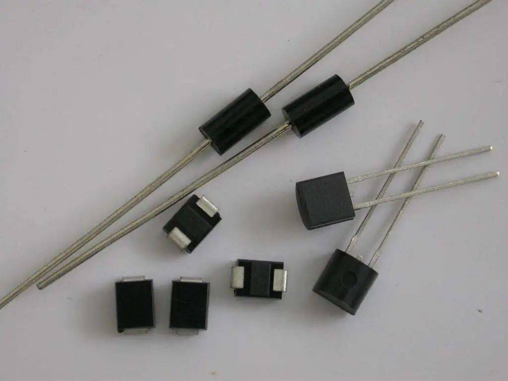 3. 肖特基二極管(SBD)----全稱為肖特基勢壘二極管,它屬于低電壓、低功耗、大電流、超高速半導(dǎo)體功率器件,其反向恢復(fù)時(shí)間可小到幾納秒,正向?qū)▔航祪H為0.4V左右,整流電流可達(dá)幾十至幾百安培。特別適合做開關(guān)電源充電器低壓輸出電路中的整流二極管、續(xù)流二極管。