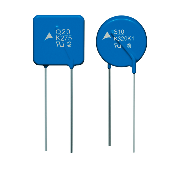 4. 壓敏電阻器(VSR)----工作電壓范圍寬(6V~3000V,分若干檔),對過電壓脈沖響應速度快(幾納秒至幾十納秒),耐沖擊電流的能力很強(可達100A~20Ka),漏電流小(低于幾微安至幾十微安),電阻溫度系數低(小于0.05%/℃),價格低廉。
