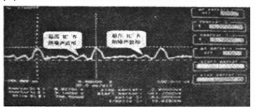 鑒于上述工作原理,對故障現象及原因分析:我廠生產的AT2516UG機器,在電源工作時,開關變壓器有明顯的“哧、哧”聲,根據以往經驗判斷此響聲為開關變壓器工作時產生的噪聲。由此,對開關變壓器次級(12)B+腳進行波形測試,具體測試如下: