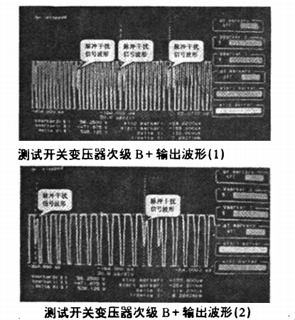 鑒于上述作業(yè)原理,對毛病現(xiàn)象及原因分析:我廠出產(chǎn)的AT2516UG機(jī)器,在電源作業(yè)時,開關(guān)變壓器有顯著的“哧、哧”聲,依據(jù)以往經(jīng)歷判斷此響聲為開關(guān)變壓器作業(yè)時發(fā)生的噪聲。由此,對開關(guān)變壓器次級(12)B+腳進(jìn)行波形測驗(yàn),詳細(xì)測驗(yàn)如下: