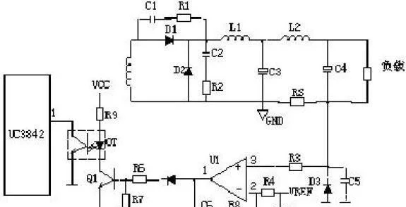 輸出限壓保護電路:輸出限壓保護電路如下圖,當輸出電壓升高,穩壓管導通光耦導通,Q1基極有驅動電壓而道通,UC3842③電壓升高,輸出下降,穩壓管不導通,UC3842③電壓下降,輸出電壓升高。循環往復,輸出電壓將安穩在一范圍內(取決于穩壓管的穩壓值)。