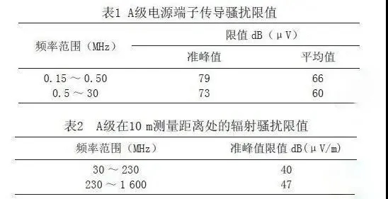 根據鐵路客運專線標準規則,傳導煩擾限值和輻射煩擾限值如表1、2所示。