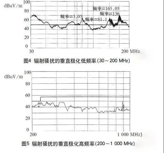 本開關電源 經過了傳導煩擾的檢驗,檢驗波形如圖2、3所示。輻射煩擾高頻段230~1000MHz也檢驗合格,如圖5所示。只是在30~200MHz頻段規模內的垂直極化目標超標, 超標20dB,如圖4所示。