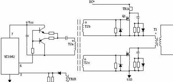 R4、C3、R5、R6、C4、D1、D2組成緩沖器,和開關電源MOS管并接,使開關電源管電壓應力削減,EMI削減,不發生二次擊穿。在開關電源電源管Q1關斷時,變壓器的原邊線圈易發生尖峰電壓和尖峰電流,這些元件組合一同,能很好地吸收尖峰電壓和電流。從R3測得的電流峰值信號參加當前工作周波的占空比操控,因此是當前工作周波的電流約束。當R5上的電壓到達1V時,UC3842停止工作,開關電源電源管Q1當即關斷 。 R1和Q1中的結電容CGS、CGD一同組成RC網絡,電容的充放電直接影響著開關電源管的開關電源電源速度。R1過小,易引起振動,電磁干擾也會很大;R1過大,會降低開關電源管的開關電源速度。Z1通常將MOS管的GS電壓約束在18V以下,然后保護了MOS管。
