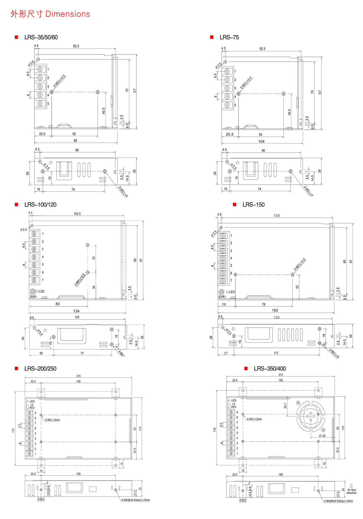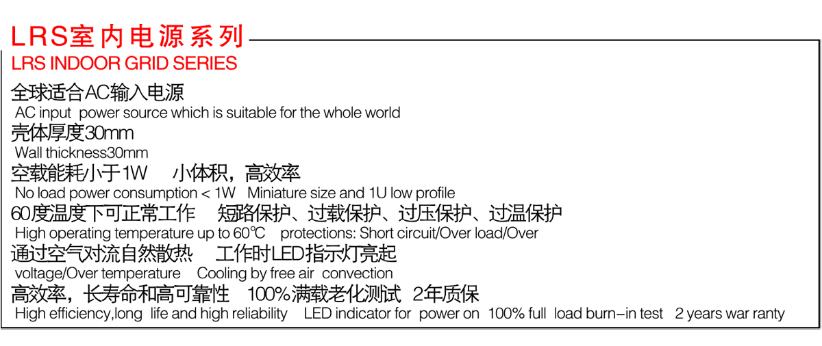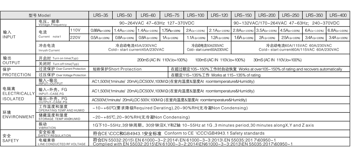 無PFC功能,經濟型機型 300VAC浪涌電流 空載待機消耗瓦數:0.2~0.75W 可承受5G震動, 70℃操作溫度 完整安規認證: EN60335-1(PD3), EN61558-1,-2-16;