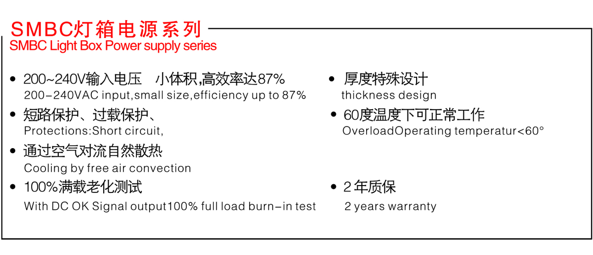 軟啟動電流設計降低AC輸入電流沖擊 超薄設計厚度低至2cm 抗電強度高 . 絕緣性452 液壓靜音風扇,噪音低 短路,過載,過壓保護 適用于燈箱廣告、展柜、LED燈帶等設備